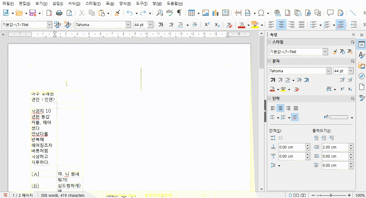 대량의 텍스트를 파워포인트 (대사)자막으로 만들기(리브레오피스 버전) 본문