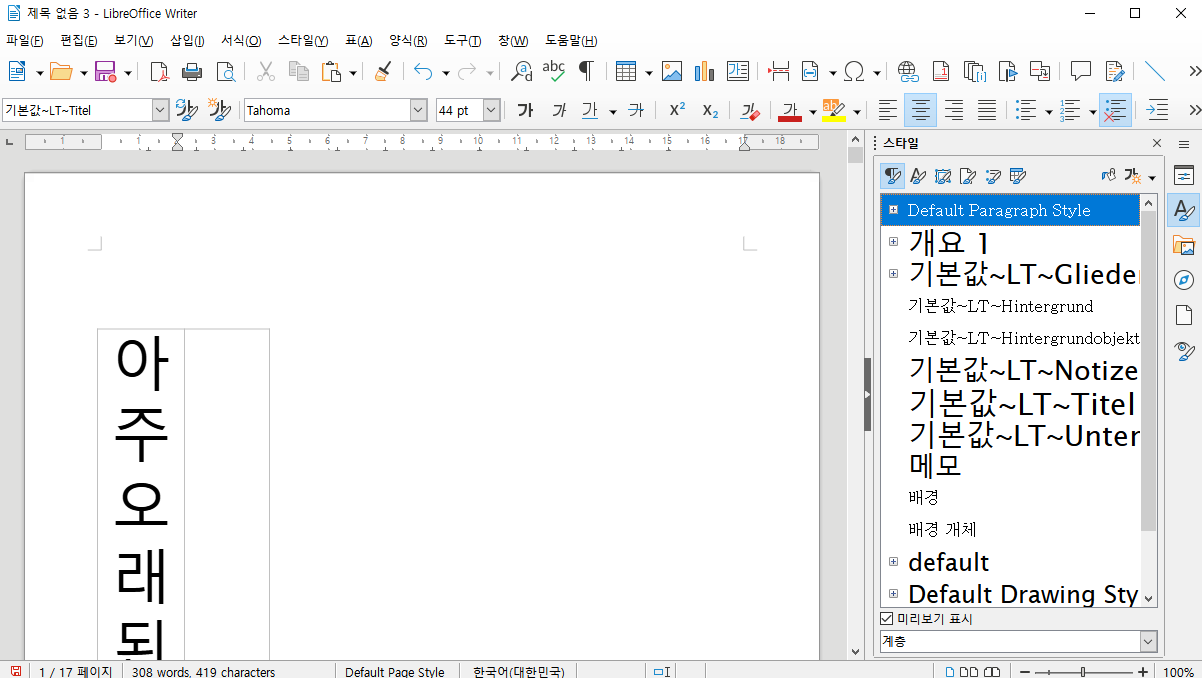 Writer 에는 Impress 에서 바로 작동 가능한 스타일이 없어 보인다. 따라서 별도로 Impress 에서 사용하는 스타일을 옮겨올 필요가 있다.