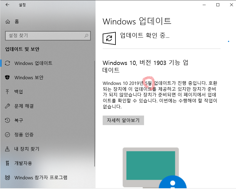 윈도우 업데이트 창에 "5웧" ㅋㅋㅋ